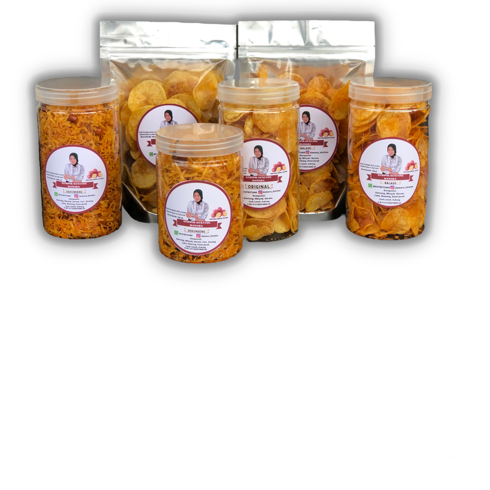 Keripik Kentang Original, Keripik Kentang Balado, Keripik Kentang Pedas Manis, Serundeng Kentang